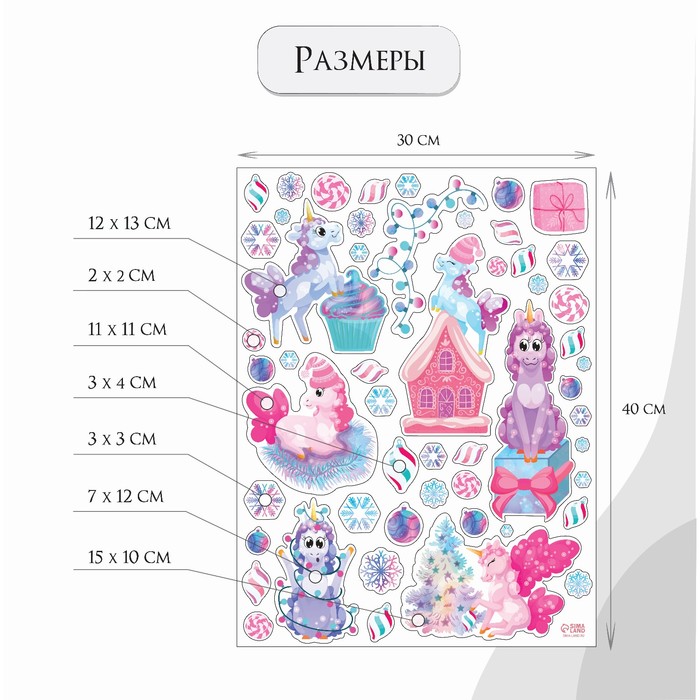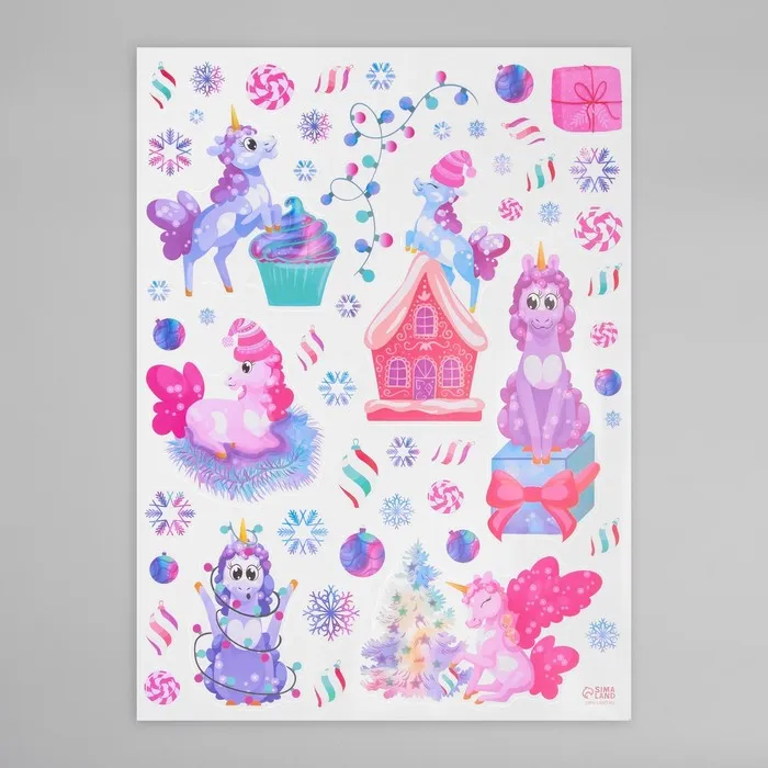 Наклейка интерьерная цветная "Новогодний единорог" 30х40 см — Характеристики