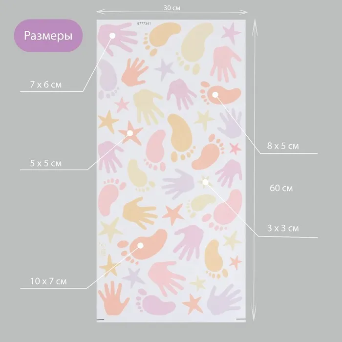 Наклейка интерьерная цветная "Ножки и ладошки" 30х60 см — Характеристики