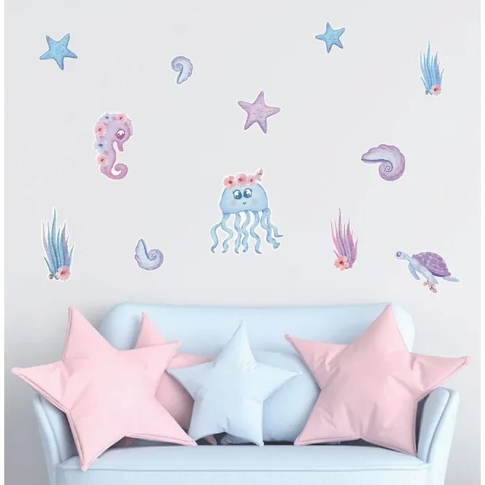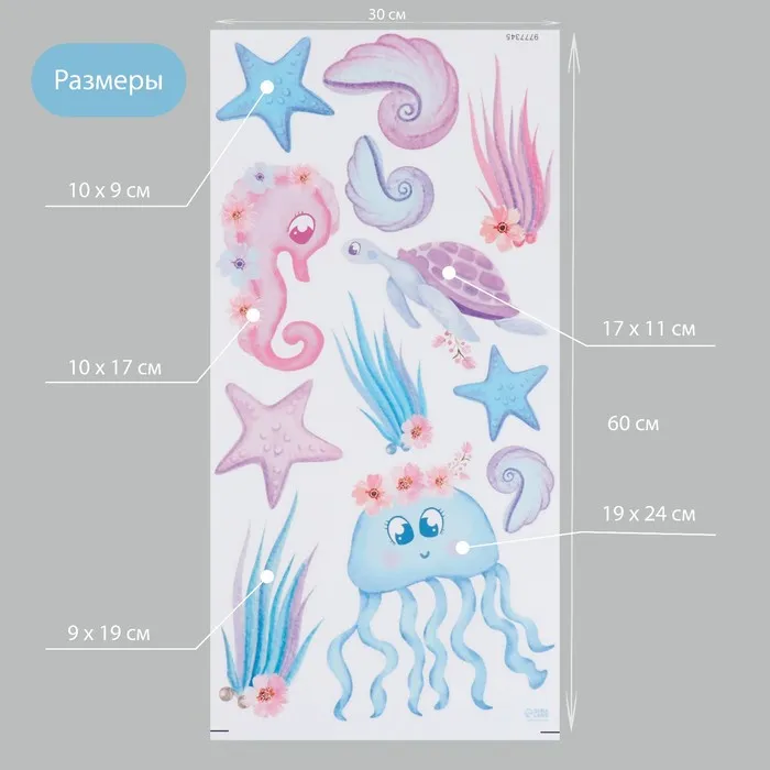 Наклейка интерьерная цветная "Подводные жители" 30х60 см — Характеристики