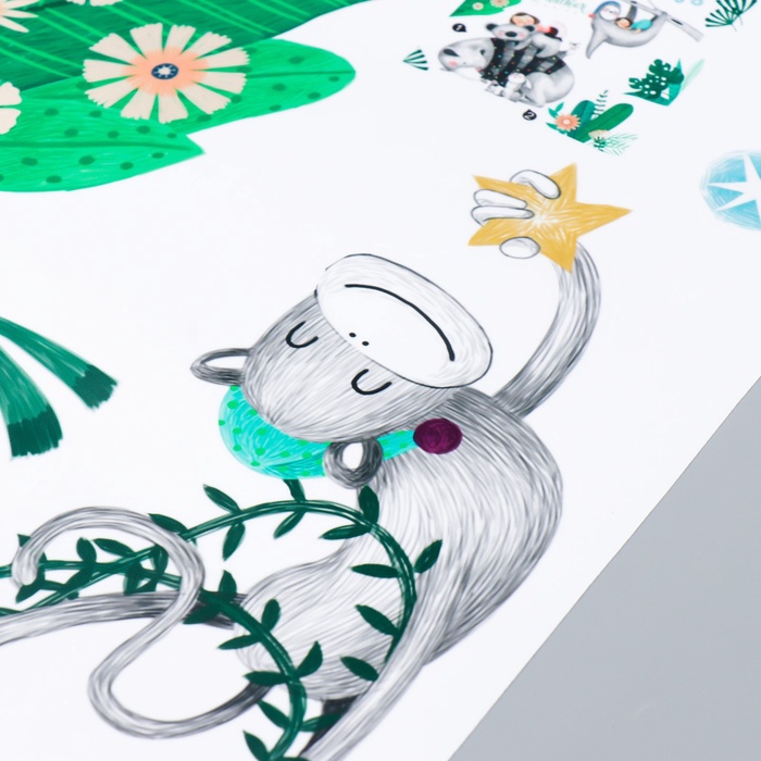 Наклейка интерьерная цветная «Приключения зверят в джунглях», набор 2 листа, 30×90 см — Характеристики