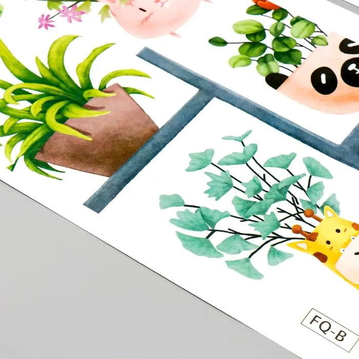 Наклейка интерьерная цветная «Растения в горшочках-зверятах», пластик, 30×90 см, набор 2 листа — Характеристики