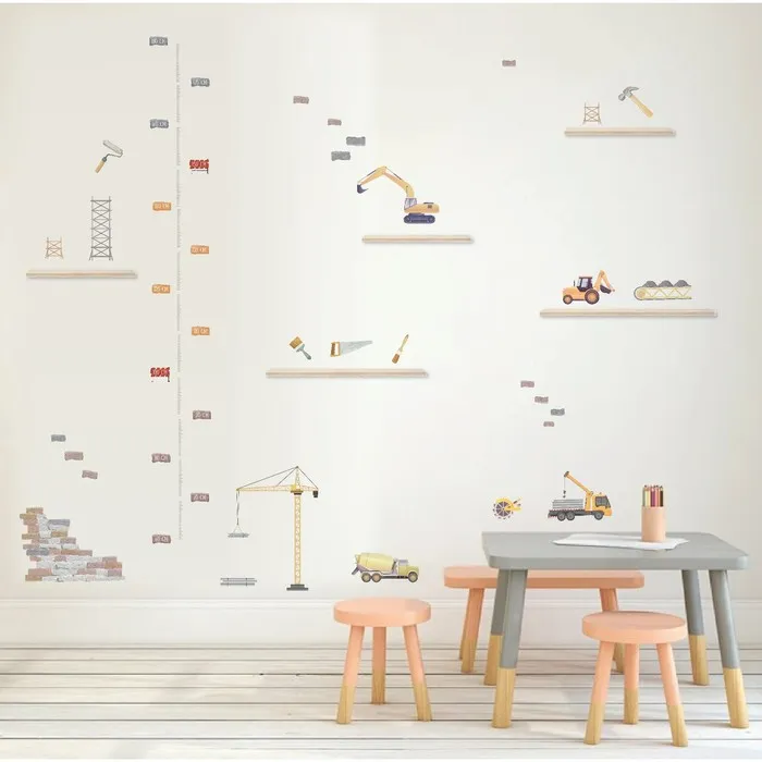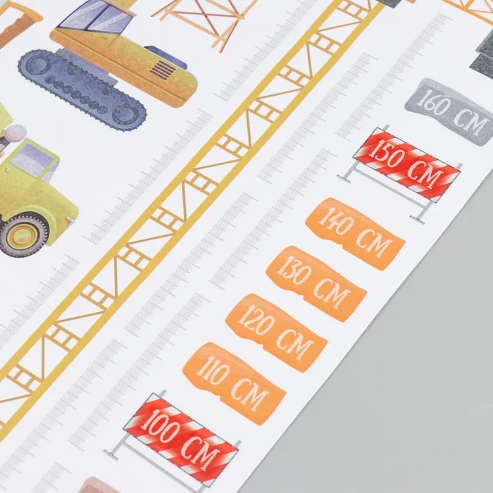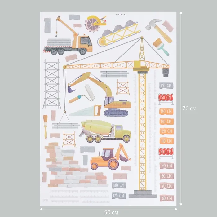Наклейка интерьерная цветная ростомер "Строительная техника" 50х70 см
