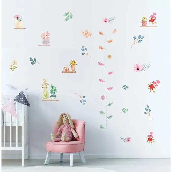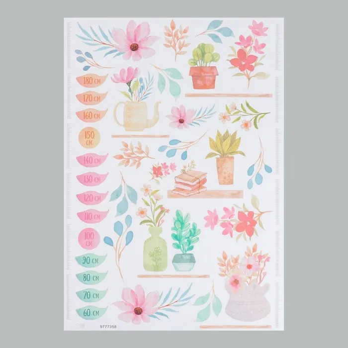 Наклейка интерьерная цветная ростомер "Цветы в горшочках" 50х70 см — Характеристики