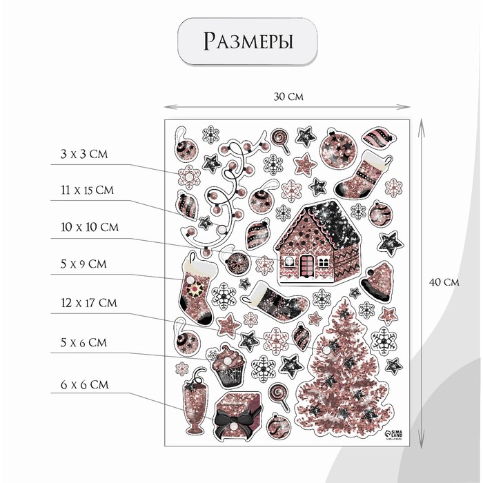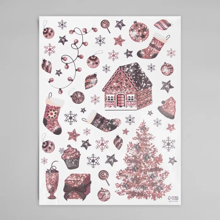 Наклейка интерьерная цветная "Розовая ёлка" 30х40 см — Характеристики