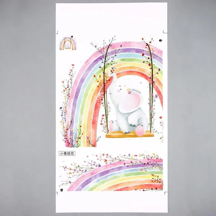 Наклейка интерьерная цветная «Слонёнок на качели на радуге», декор на стену, 30×45 см — Характеристики