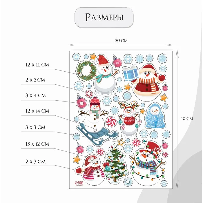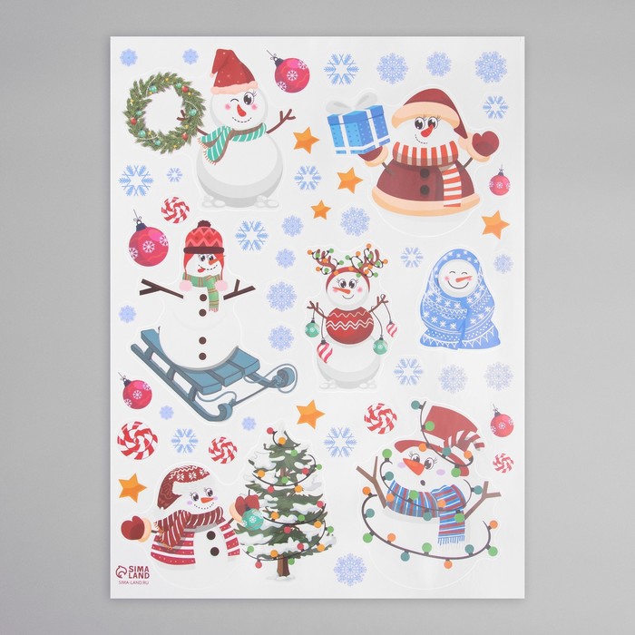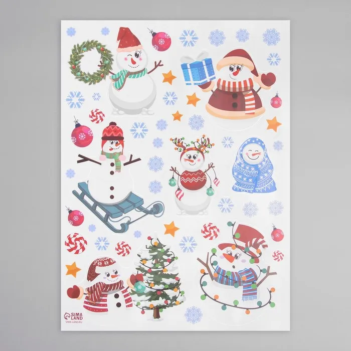 Наклейка интерьерная цветная "Снеговики и гирлянды" 30х40 см — Характеристики