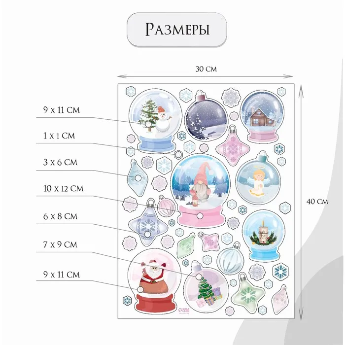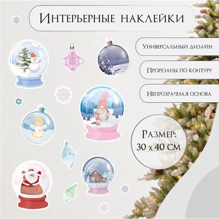 Наклейка интерьерная цветная "Снежные шары" 30х40 см — Характеристики