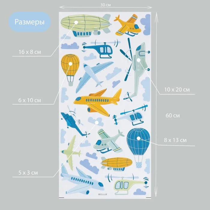 Наклейка интерьерная цветная «Воздушный транспорт», 30×60 см — Характеристики