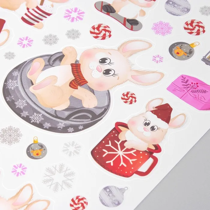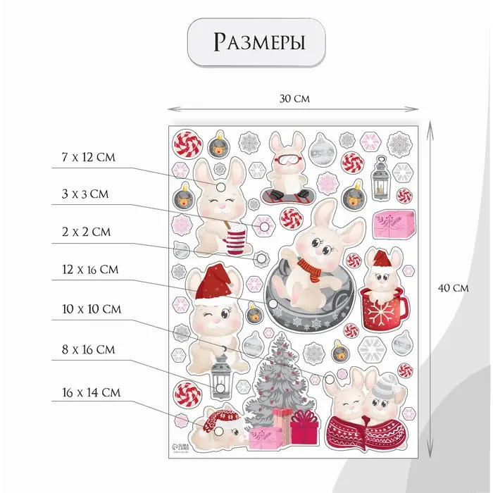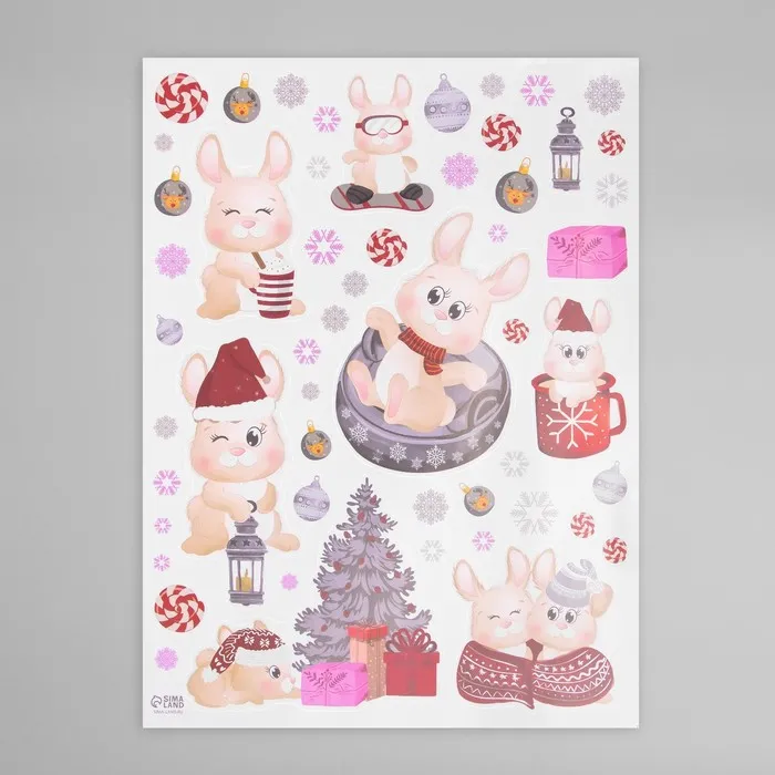 Наклейка интерьерная цветная "Зайчата новогодние" 30х40 см — Характеристики