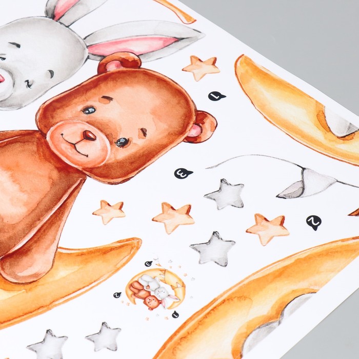 Наклейка интерьерная цветная «Зайка и мишка на месяце», пластик, 45×60 см — Характеристики
