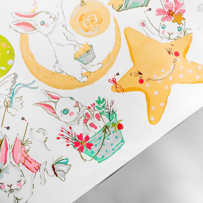 Наклейка интерьерная цветная «Зайки, воздушные шары и звёзды», 60×90 см — Характеристики