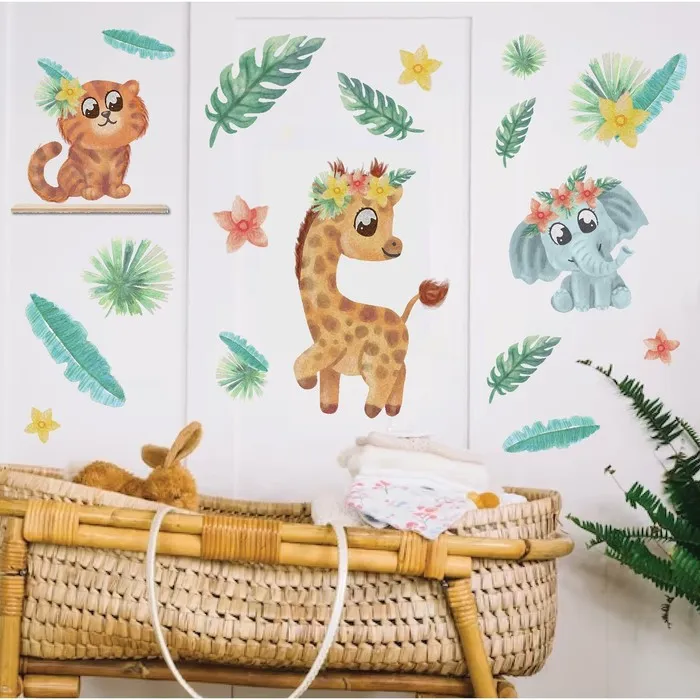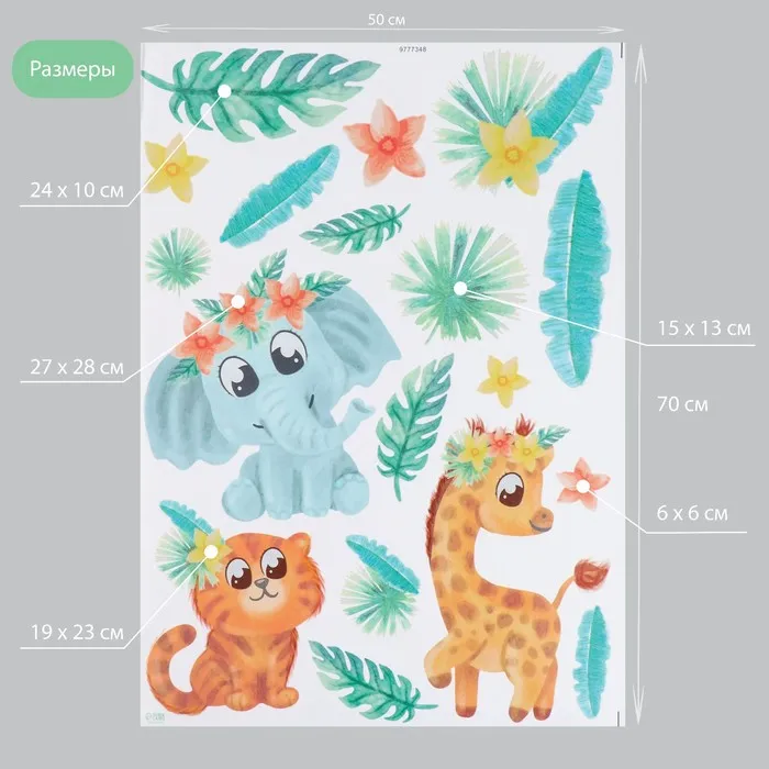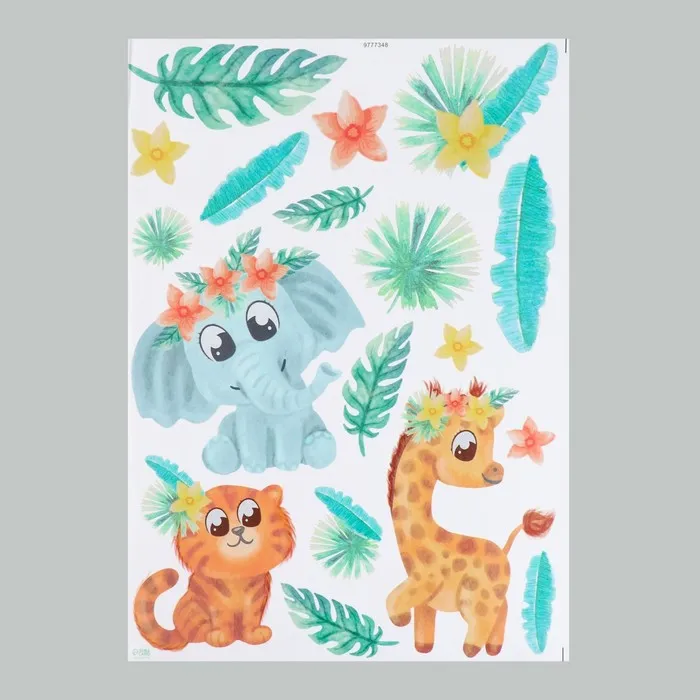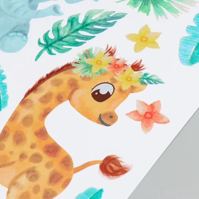 Наклейка интерьерная цветная "Зверята и экзотические цветы" 50х70 см — Характеристики