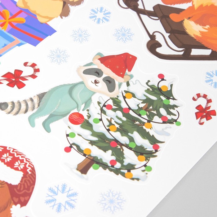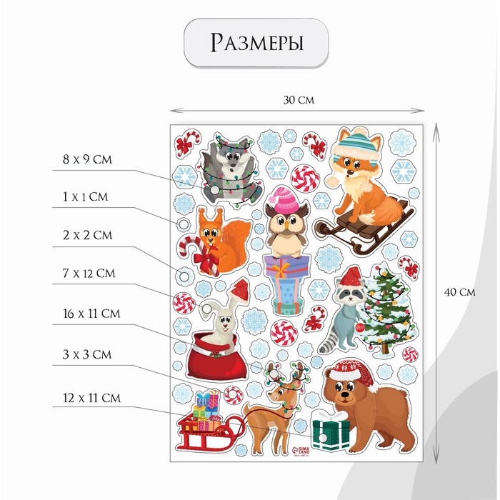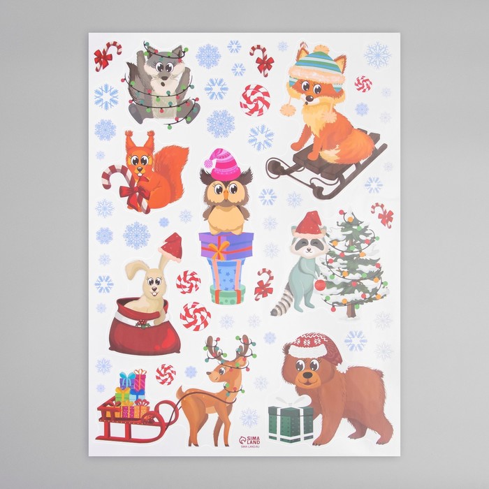 Наклейка интерьерная цветная "Зверята празднуют Новый год" 30х40 см — Характеристики