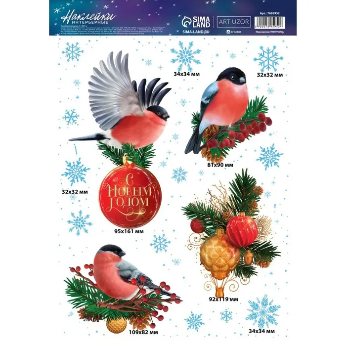 Наклейка интерьерная «Волшебные снегири», 21 х 29,7 см — Характеристики