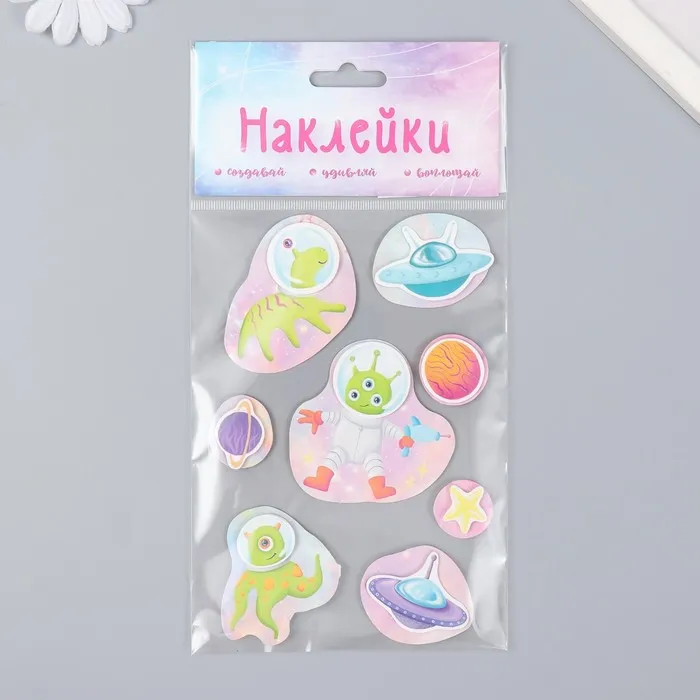 Наклейка картон 2 слоя "Добрые инопланетяне" 17х12 см — Характеристики