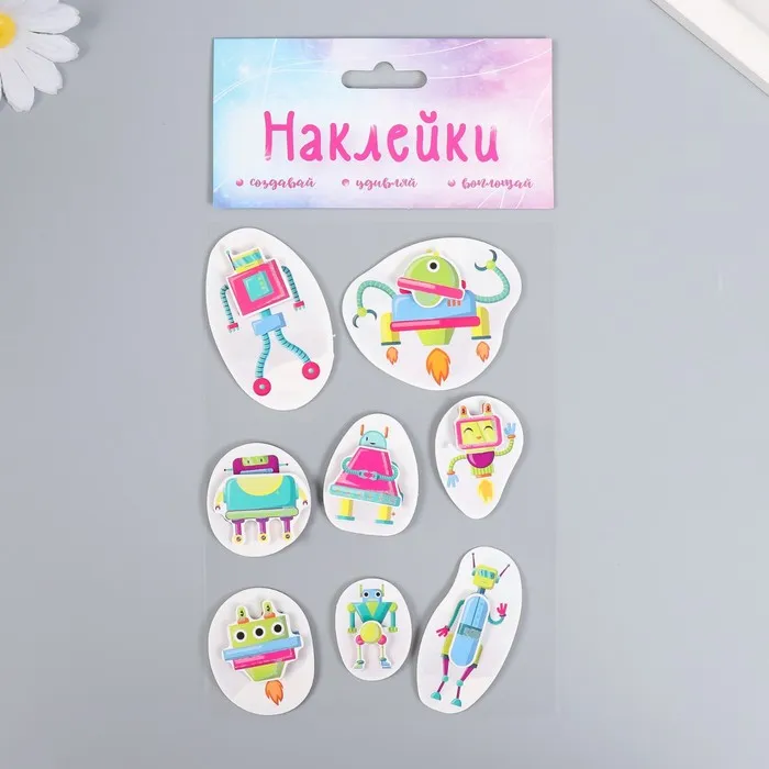 Наклейка картон 2 слоя "Роботы" 17х12 см — Характеристики