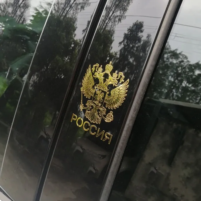 Наклейка на авто, Герб России, 9.1×7 см, золотистый — Характеристики