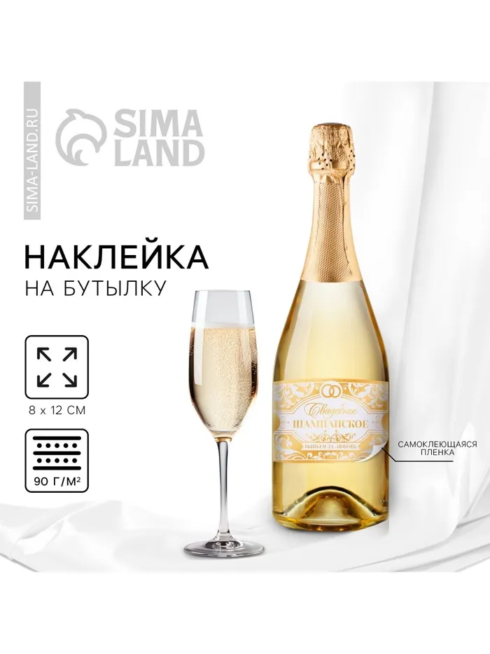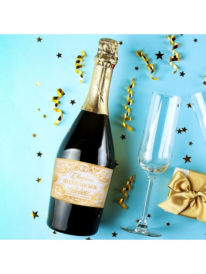 Наклейка на бутылку на свадьбу «Свадебное шампанское», 12×8 см — Характеристики