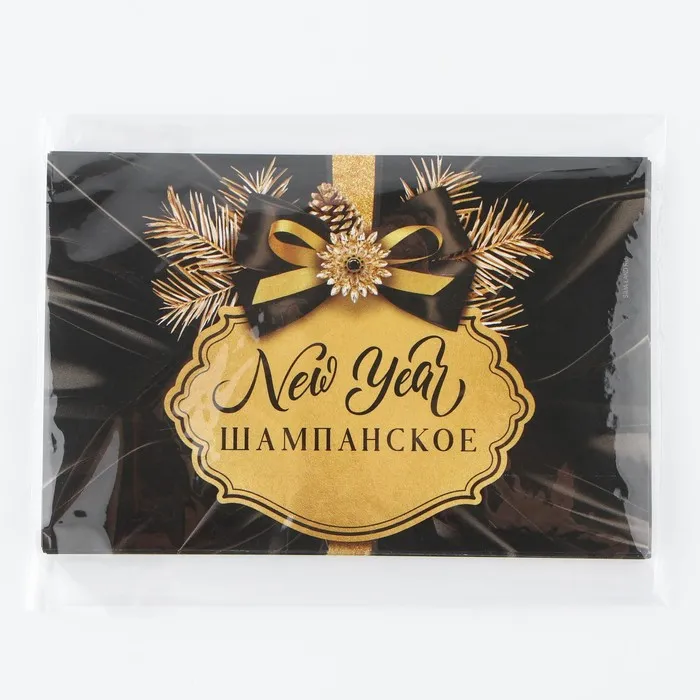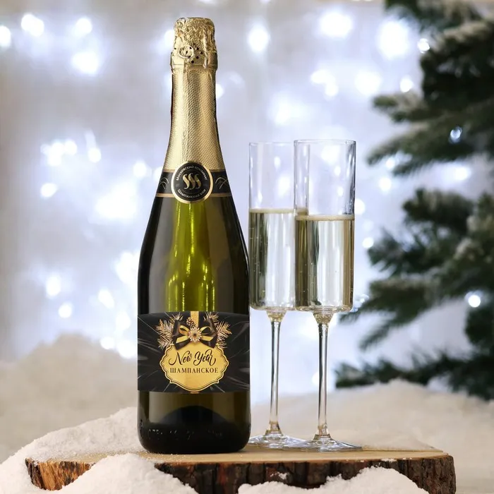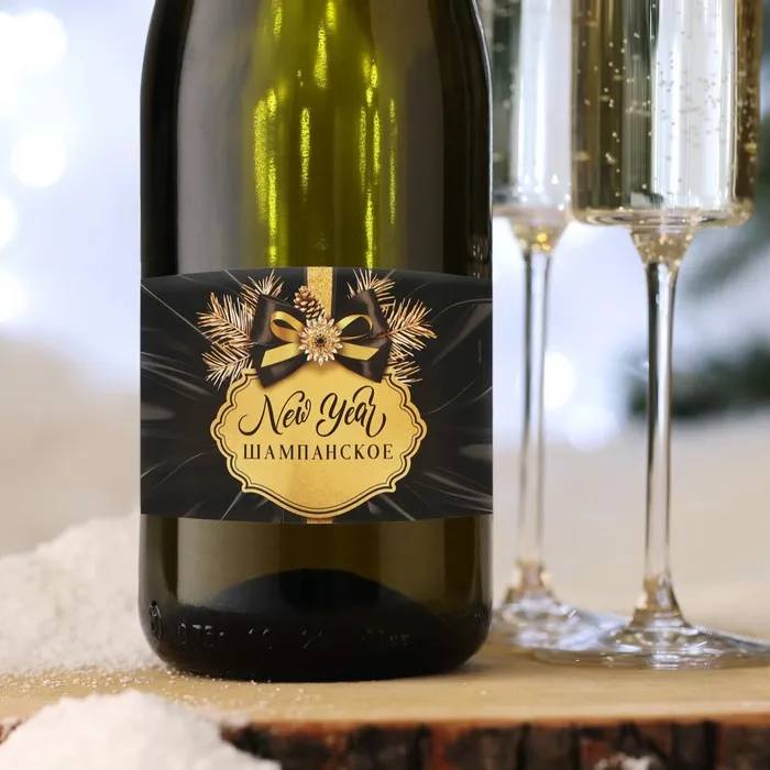 Наклейка на бутылку «Шампанское новогоднее», черная, 12×8 см — Характеристики