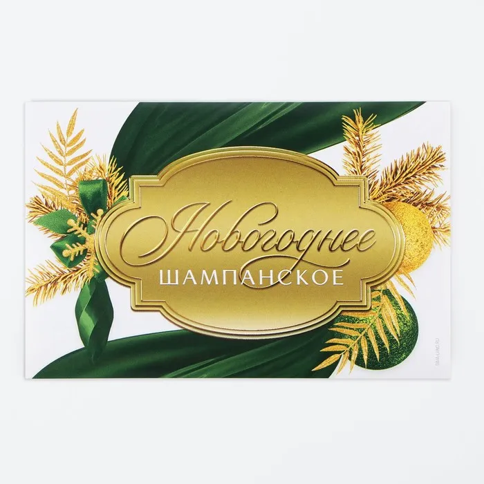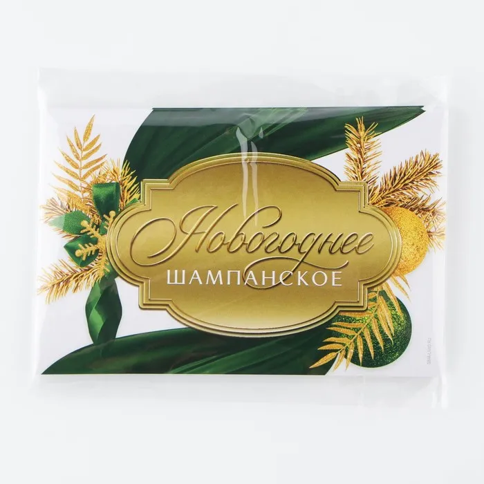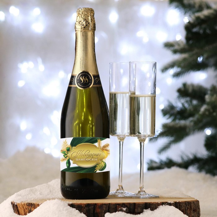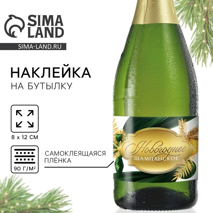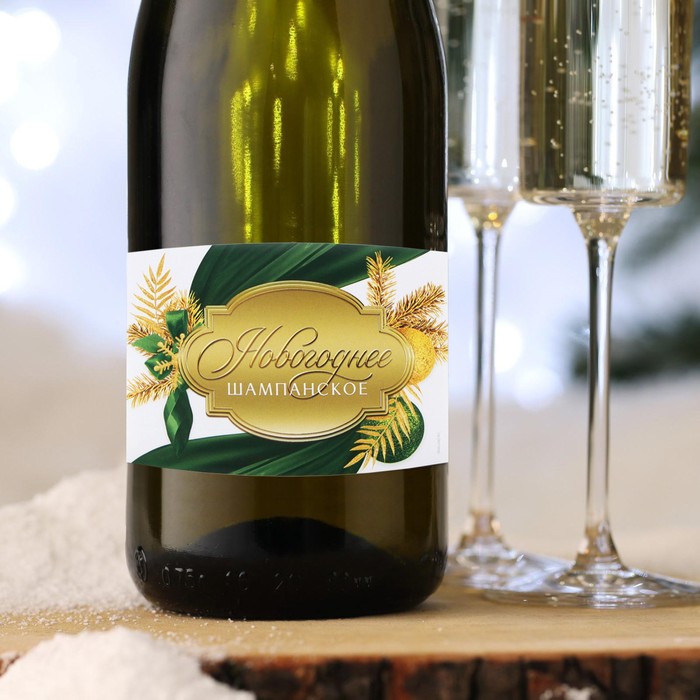 Наклейка на бутылку «Шампанское новогоднее», зелёный с золотом, 12×8 см — Характеристики