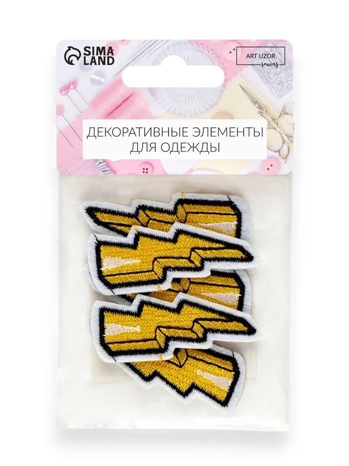 Наклейка на одежду «Молния», с клеевой основой, 2×5 см, жёлтая — Характеристики