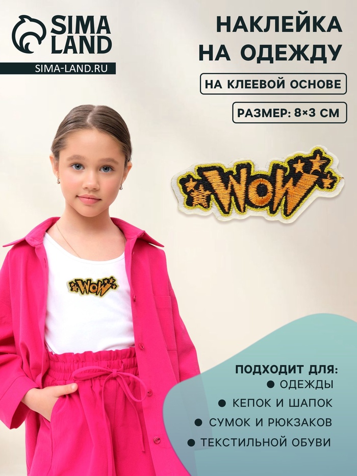Наклейка на одежду WOW, на клеевой основе, 8×3 см, разноцветная — Характеристики