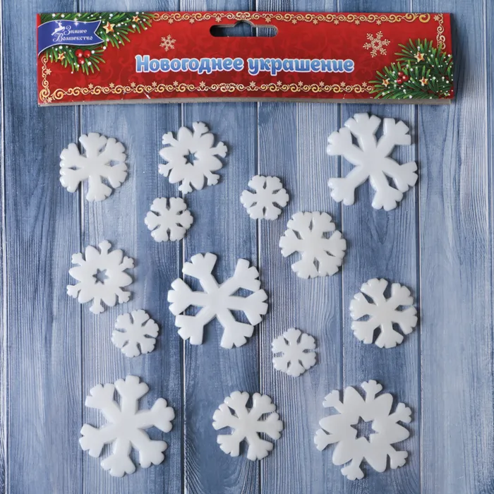 Наклейка на стекло «Белые снежинки», набор - 14 шт., 18.5×18.5 см — Характеристики