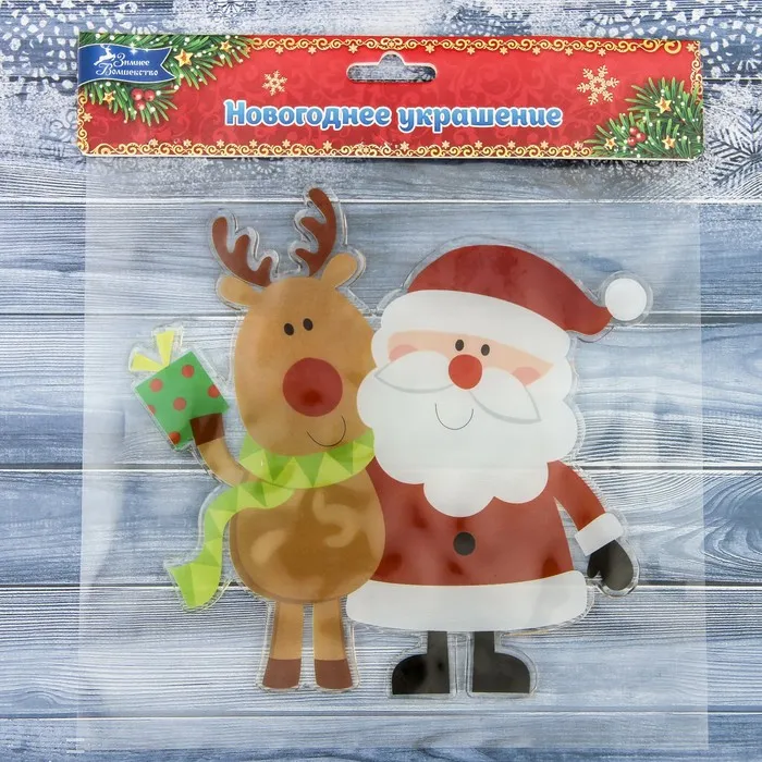 Наклейка на стекло «Дед Мороз с оленем», 16.5×16.5 см — Характеристики