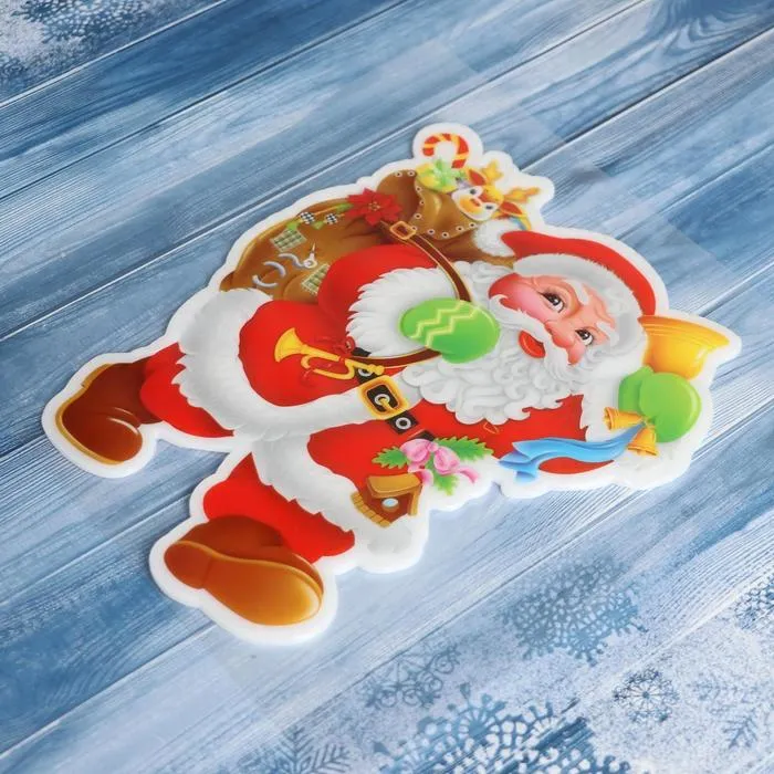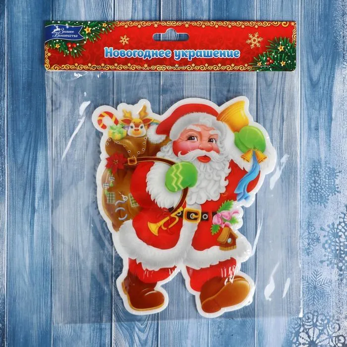 Наклейка на стекло «Дед Мороз с подарками и колокольчиком», 14.5×18 см — Характеристики