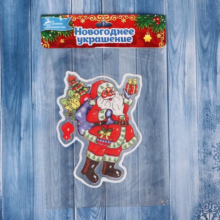 Наклейка на стекло «Дед Мороз с подарками, в валенках», 10×13 см — Характеристики