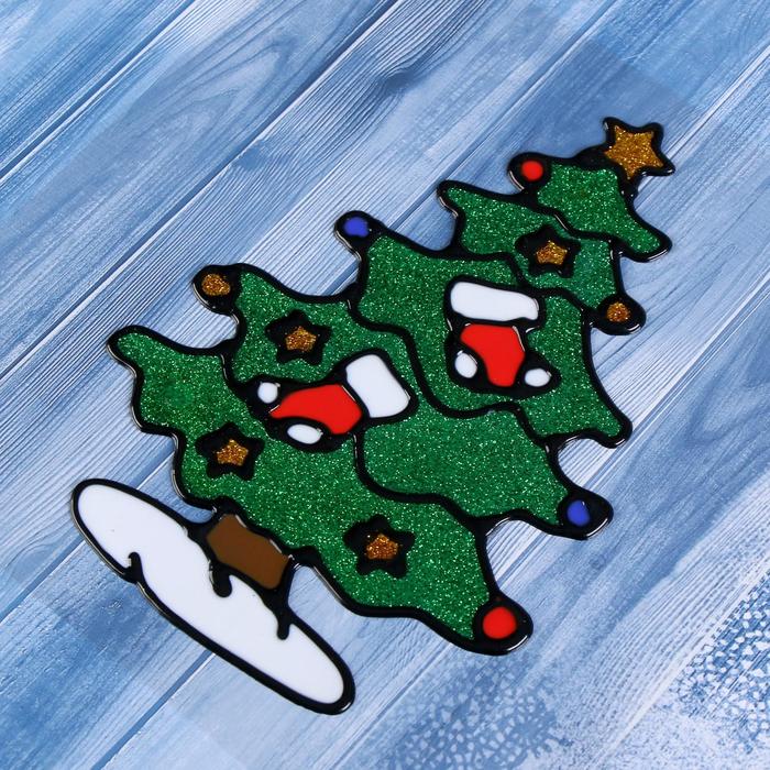 Наклейка на стекло "Ёлочка с носочками" 13х18 см