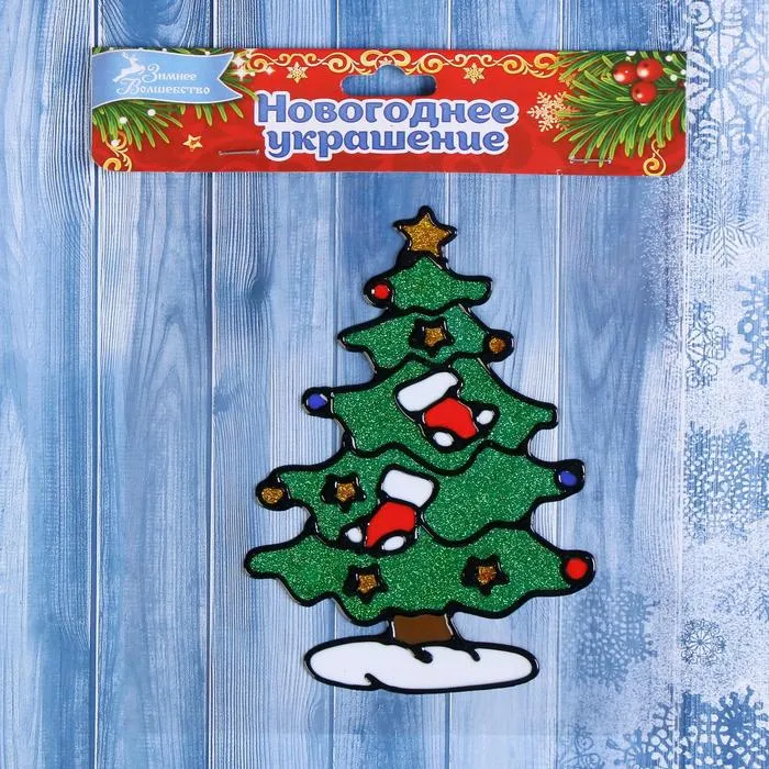 Наклейка на стекло "Ёлочка с носочками" 13х18 см — Характеристики