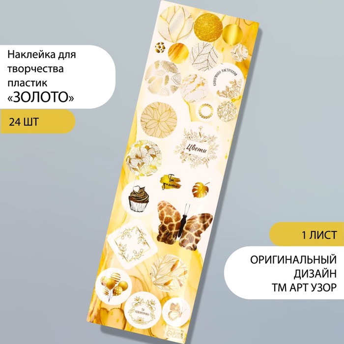Наклейка для творчества пластик «Золото», 6.5×19 см