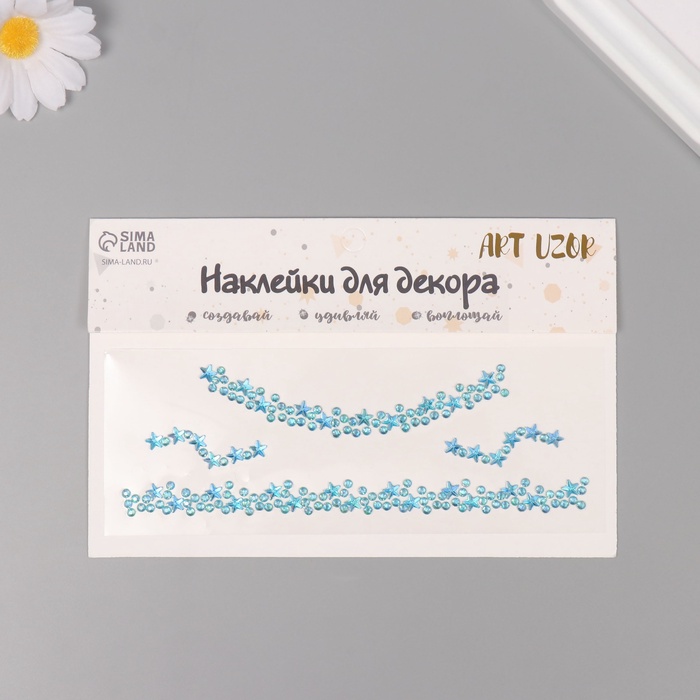 Наклейка пластик стразы "Чокер из звёзд" голубой 11,6х18 см