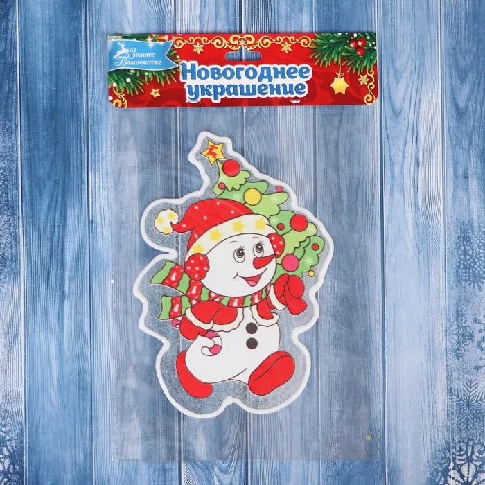 Наклейка на стекло «Снеговик с ёлкой», 10×14 см — Характеристики