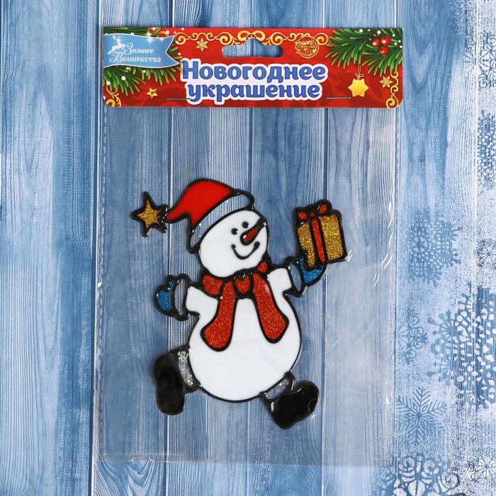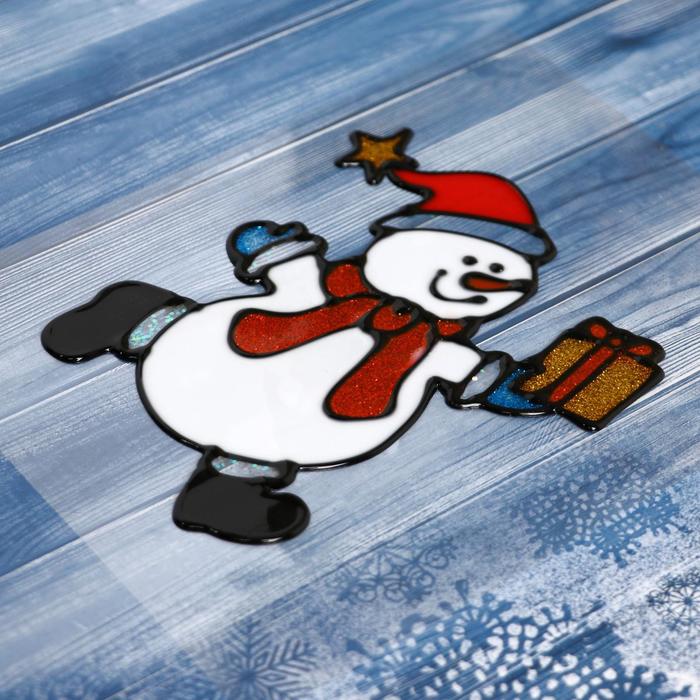 Наклейка на стекло «Снеговик с подарком», 10.5×12.5 см
