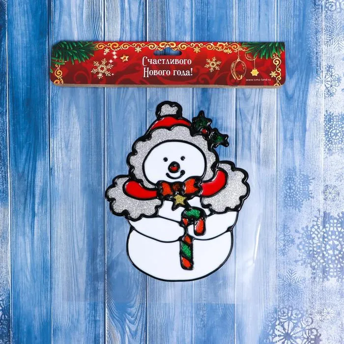 Наклейка на стекло «Снеговик в шапочке», 12.5×15.5 см — Характеристики