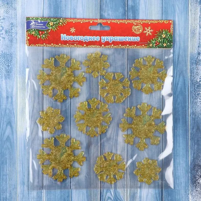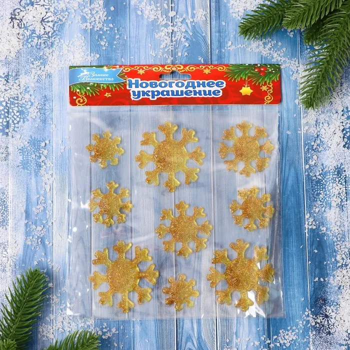 Наклейка на стекло «Снежинка», набор - 9 шт., 18.5×18.5 см, золотистая — Характеристики