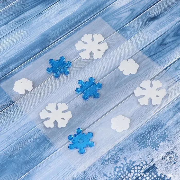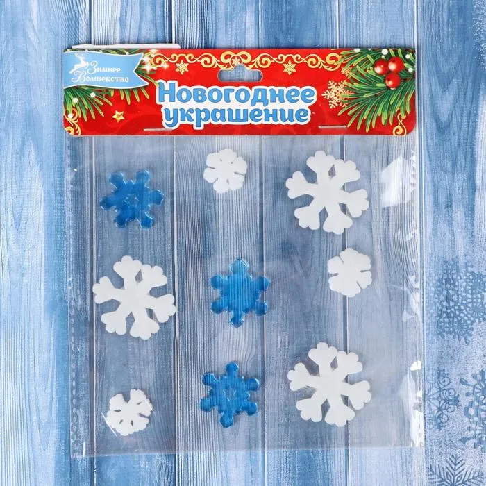 Наклейка на стекло «Снежинки белые и синие», набор 9 шт., 12.5×12.5 см, сине-белый — Характеристики