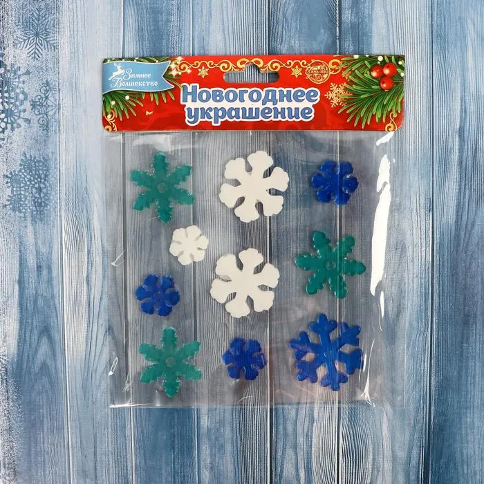 Наклейка на стекло «Снежинки», набор - 10 шт., 12.5×12.5 см, белая/зелёная/синяя — Характеристики