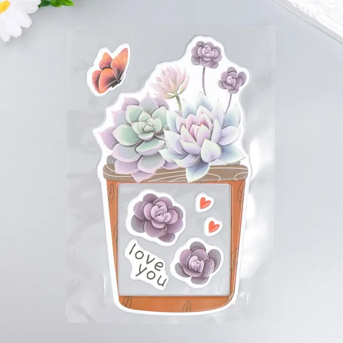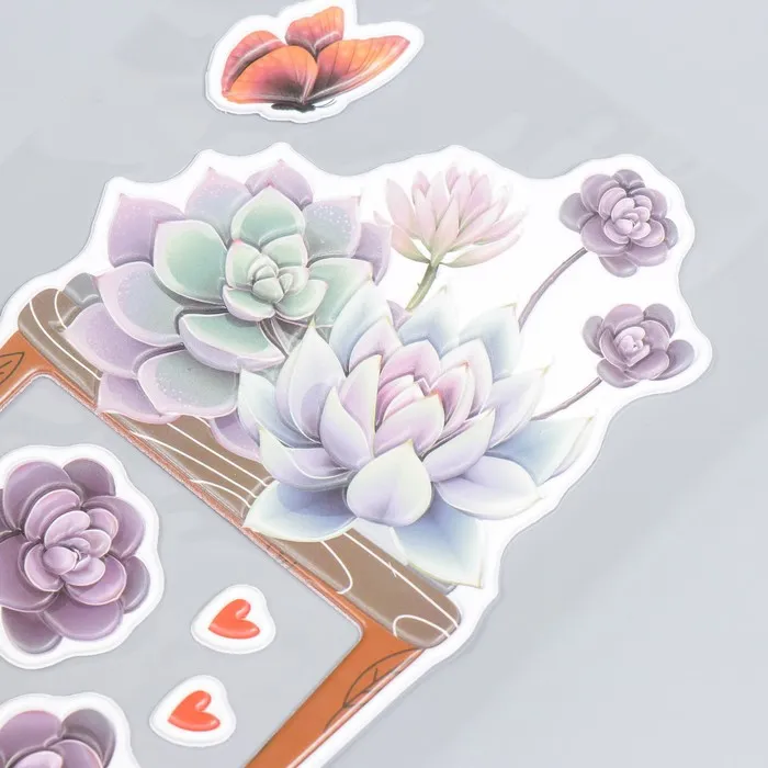 Наклейка на выключатель "Суккуленты в горшочке" окно 8,5х8,5 см, объемная 26х16,5 см — Характеристики