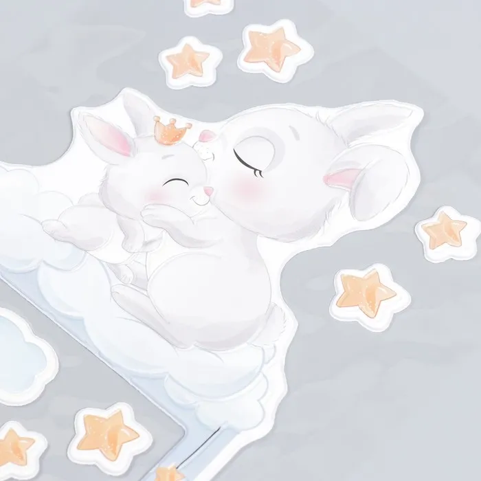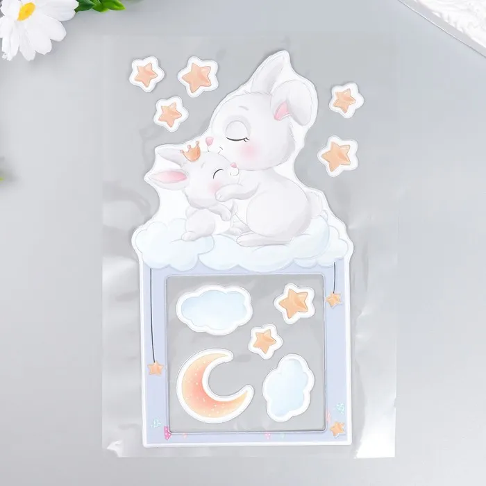 Наклейка на выключатель "Зайчики на облаке" окно 8,5х8,5 см, объемная 26х16,5 см — Характеристики