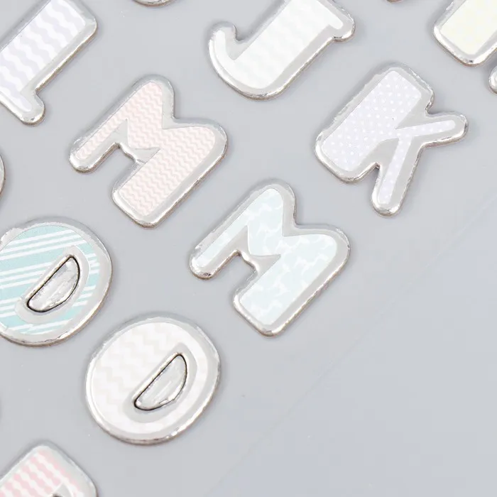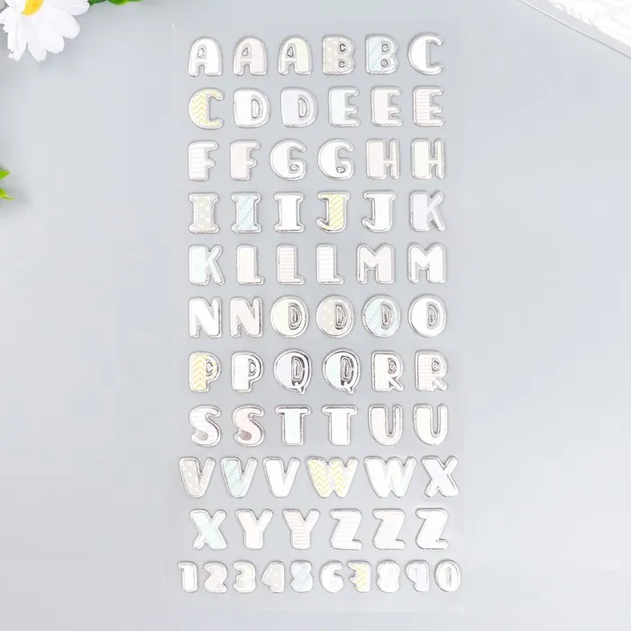 Наклейка пластик "Английский алфавит и цифры. Геометрия" серебристая обводка 31х14 см — Характеристики