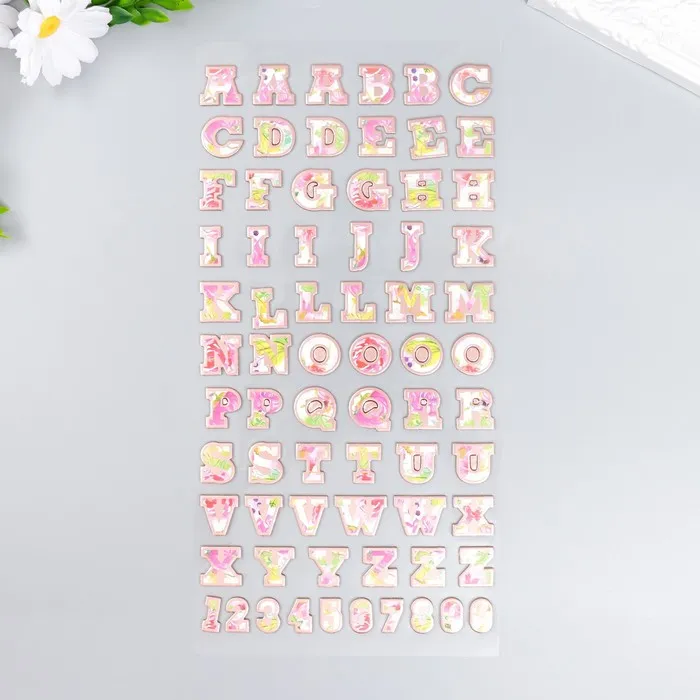 Наклейка пластик "Английский алфавит и цифры. Цветы" 31х14 см — Характеристики