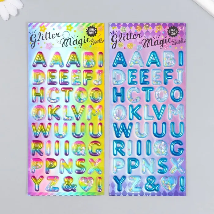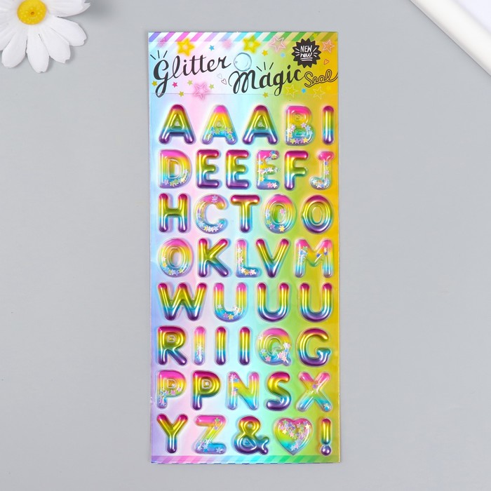 Наклейка пластик "Английский алфавит" с глиттером МИКС 9х20,5 см