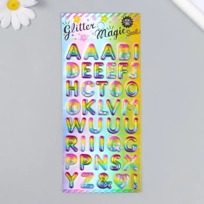 Наклейка пластик "Английский алфавит" с глиттером МИКС 9х20,5 см — Характеристики
