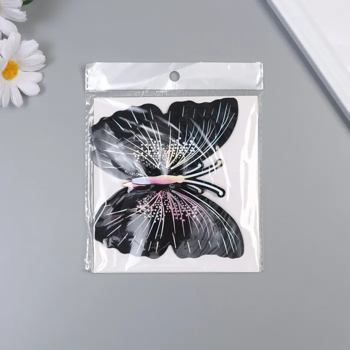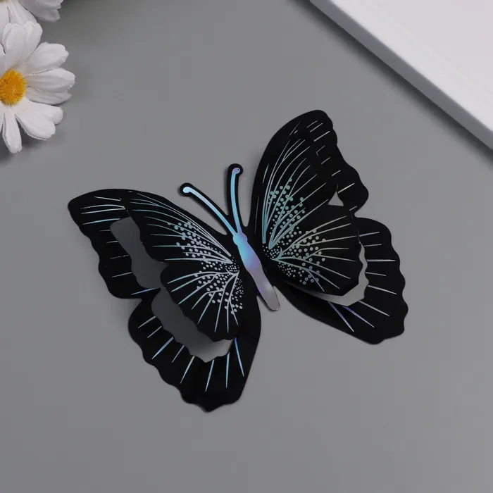 Наклейка пластик "Бабочки чёрные с серебром" двойные крылья набор 12 шт 12 см, 10 см 8 см — Характеристики