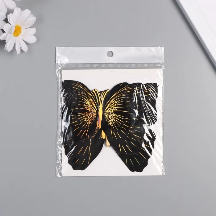Наклейка пластик "Бабочки чёрные с золотом" двойные крылья набор 12 шт 12 см, 10 см 8 см — Характеристики