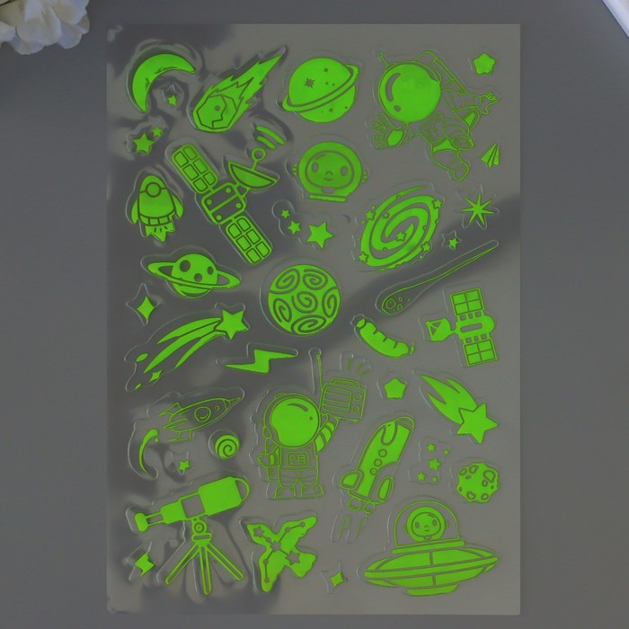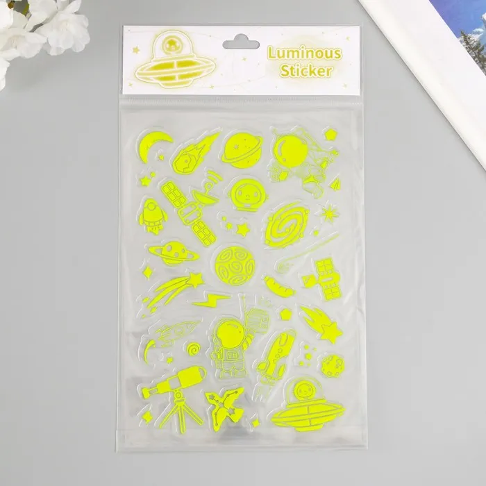 Наклейка пластик фосфорная "Яркий космос" МИКС 27х15,5 см — Характеристики