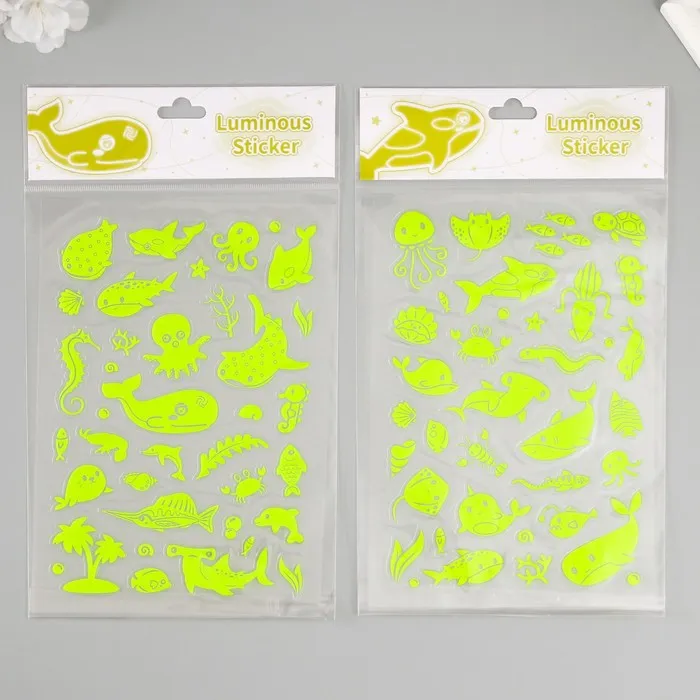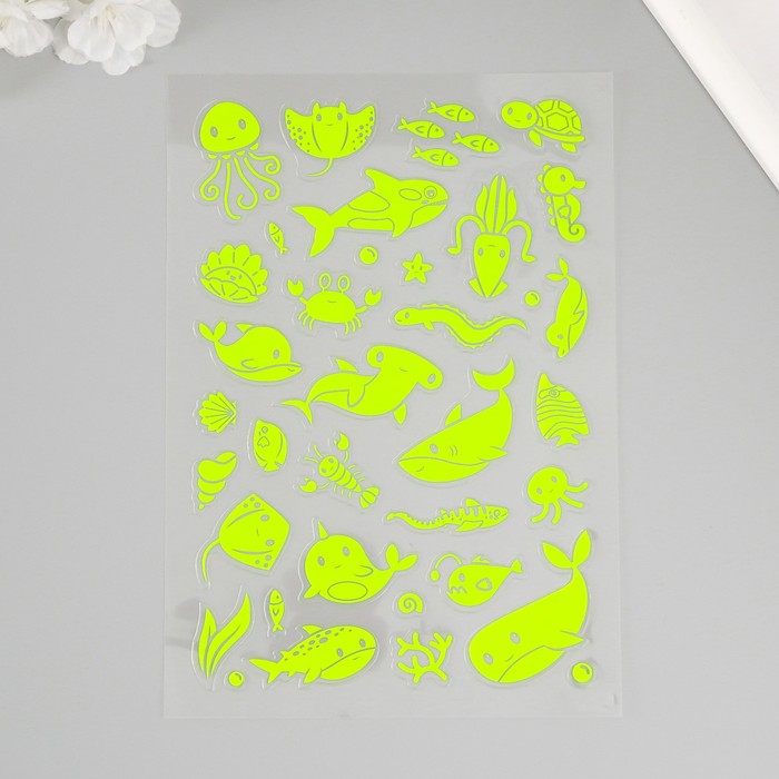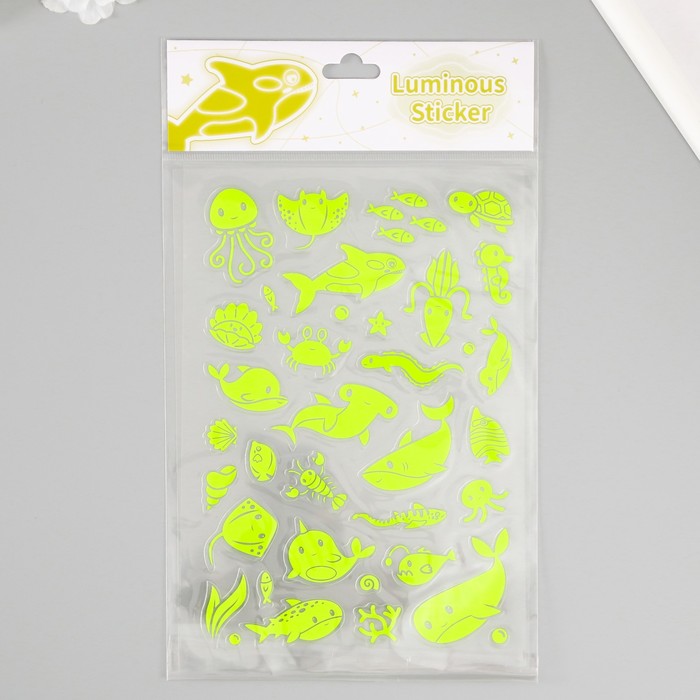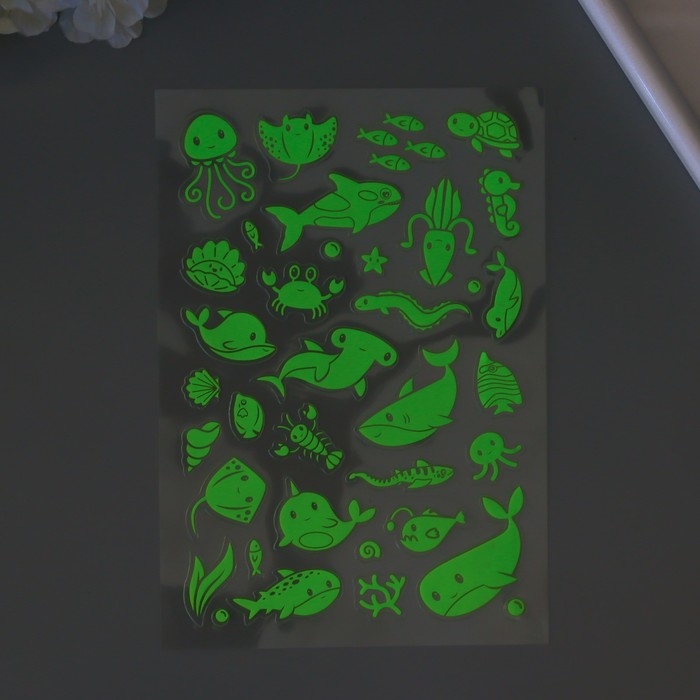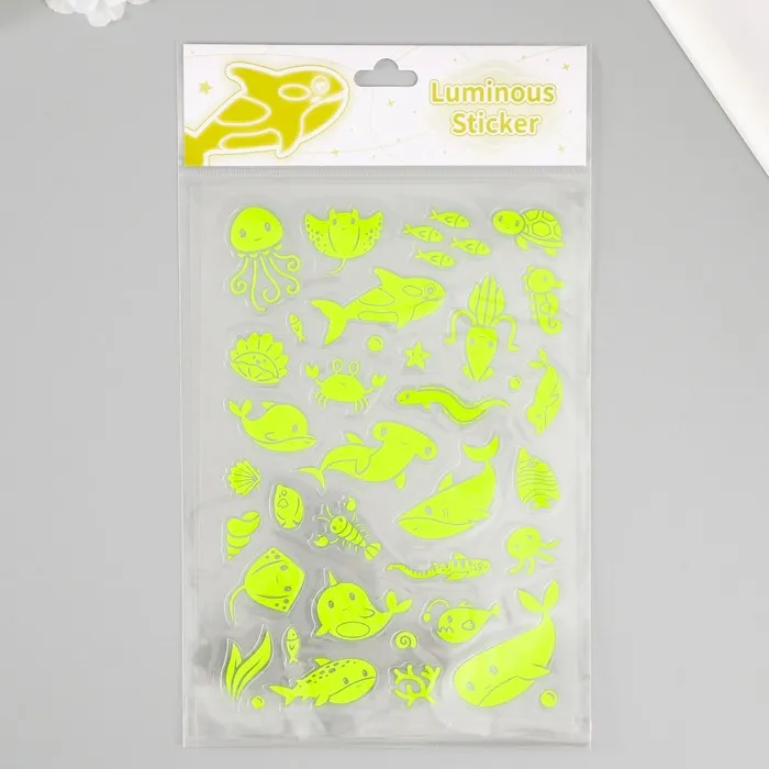 Наклейка пластик фосфорная "Морские жители" МИКС 27х15,5 см — Характеристики